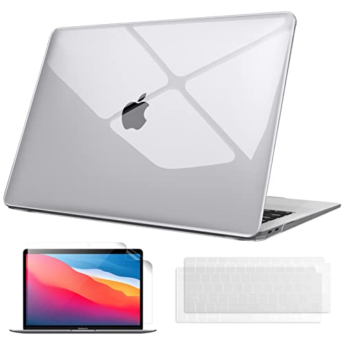 FINTIE - جراب حماية صلب بلاستيك رفيع مع طبقة لوحة المفاتيح وواقي شاشة متوافق مع ماك بوك اير 13 M1 (A2337) / اير 13 2020 2019 2018 (A1932/A2179) من فينتي، شفاف كريستال