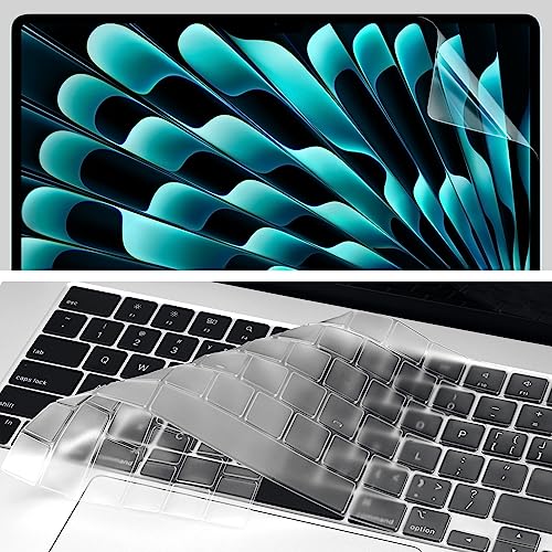 FINTIE - حافظة حماية واقية صلبة رفيعة للغاية + أغطية كيبورد + واقي شاشة متوافقة مع ماك بوك اير 15 ام 2 شيب (إصدار 2023) A2941 من فاينتي، لون شفاف
