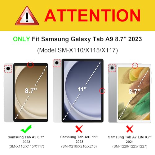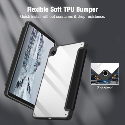 FINTIE - جراب رفيع هجين مضاد للصدمات مع غطاء خلفي شفاف من فينتاي لجهاز سامسونج جالاكسي تاب A9 8.7 بوصة 2023 SM-X110 - X115 - X117 - اسود بولي كربونات يوريثين للجنسين