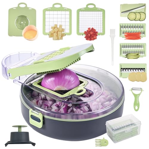 FIRAWER - قطاعة خضروات احترافية من فيراور - قطاعة البصل والخضروات، قطاعة مندولين، قطاعة طعام تأتي مع ادوات تنظيف، واقي لليد ومصفاة، قطاعة خضروات مع حاوية