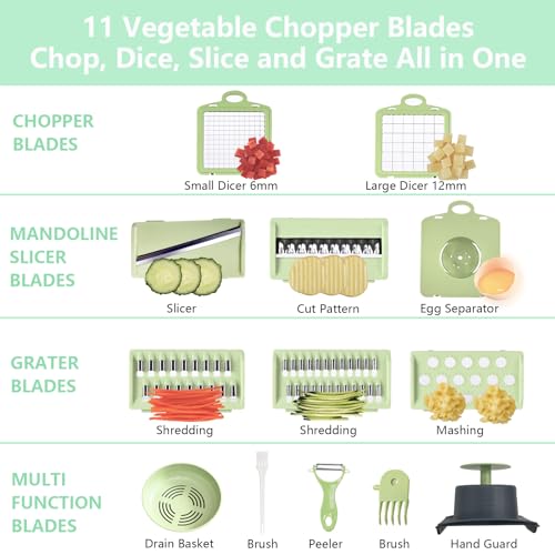 - ✔️【6 شفرات حادة للغاية قابلة للتبديل】- بعد حصولك عليها، لن تقلق بشأن تقطيع البصل والبطاطس والطماطم والجبن والشوكولاتة. تأتي قطاعة الطعام هذه مع شفرة تقطيع دقيقة واحدة وشفرة تقطيع متوسطة الحجم وشفرتين تقطيع وشفرتين مبشرة وشفرة طحن. في الوقت الحالي، نحن أول بائع أضاف شفرة تقطيع دقيقة، نهدف إلى إطالة عمر قطاعة الخضروات، الأكثر اقتصادا ومتانة، تساعدك على توفير الكثير من المال.