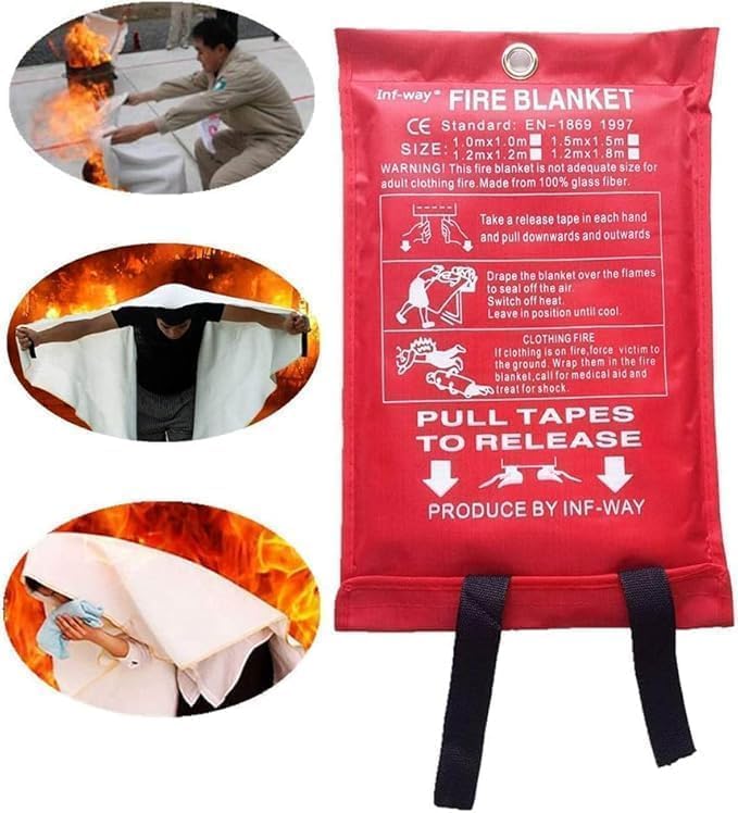 Generic - بطانية حريق مقاومة للهب مصنوعة من ألياف زجاجية ، تأتي بمقاس 120×180 سم، وهي مثالية لإطفاء الحرائق في المنازل أو الأماكن التجارية ، البطانية فعالة في عزل الأكسجين عن اللهب يساعد في السيطرة على الحريق