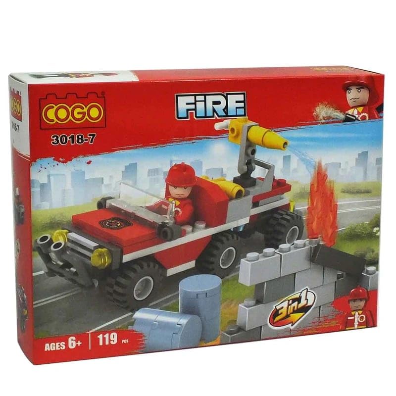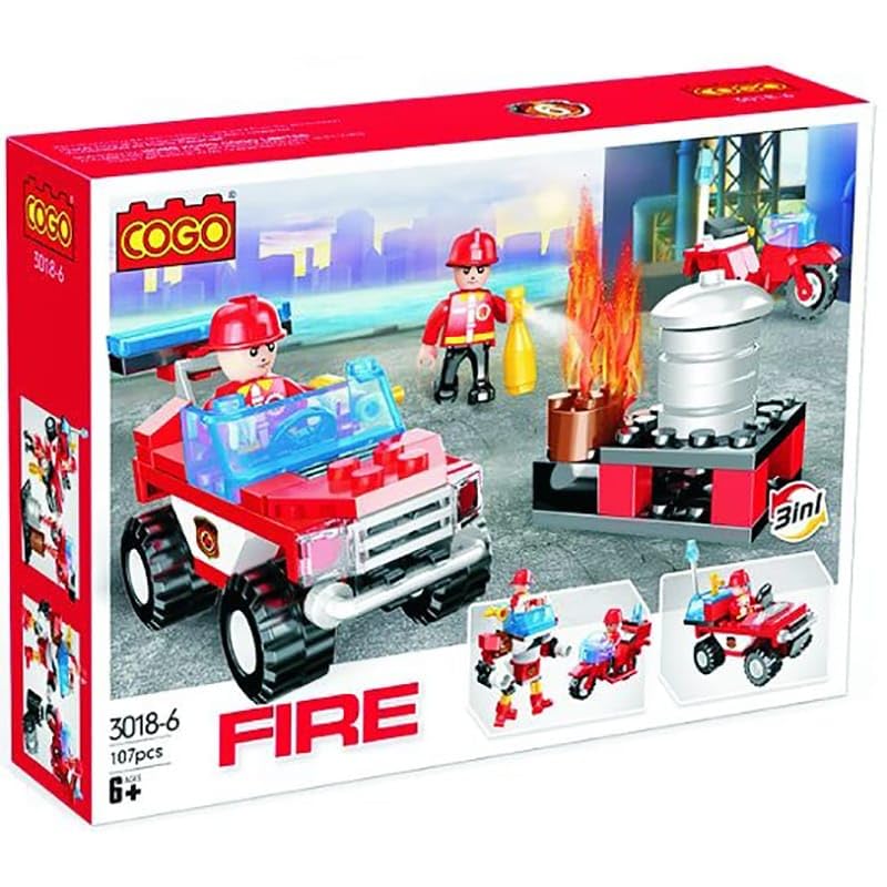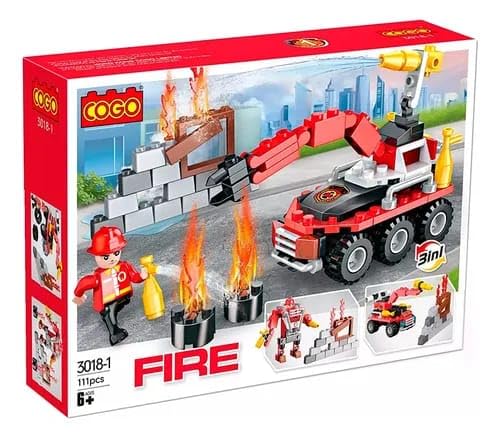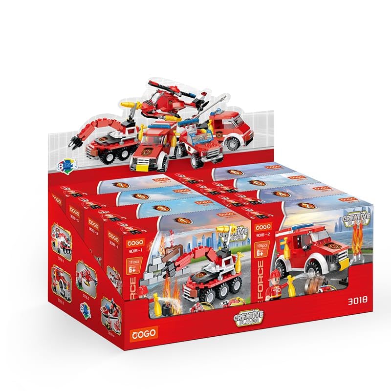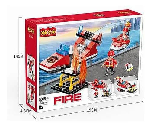 - مجموعة بناء إبداعية: مجموعة مكعبات بناء بموضوع الإطفاء من تتضمن عدة نماذج قابلة للتركيب بما في ذلك سيارة إطفاء ومروحية وشاحنة ودراجة نارية ومحطة إطفاء