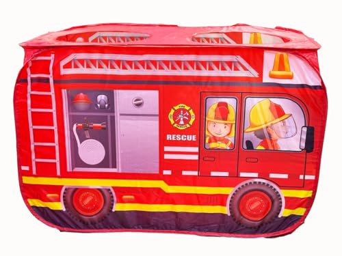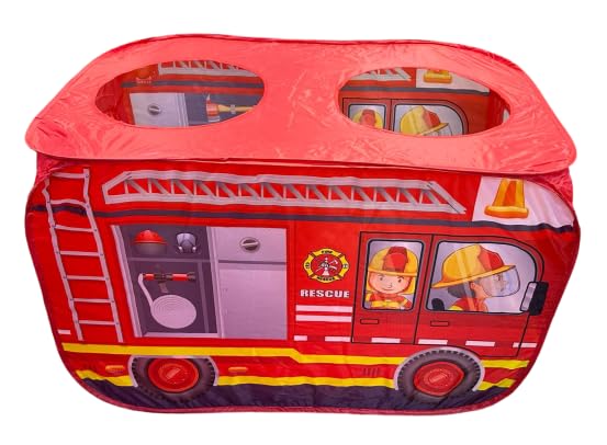 Generic - خيمة لعب منبثقة بطابع شاحنة إطفاء للأطفال، بيت لعب قابل للطي للأماكن الداخلية بتصميم شاحنة إطفاء حمراء