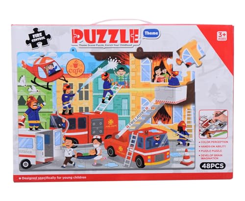 - لعبة بازل علي شكل سيارات اطفاء الحرائق مكونة من 48 قطعة للأطفال.
