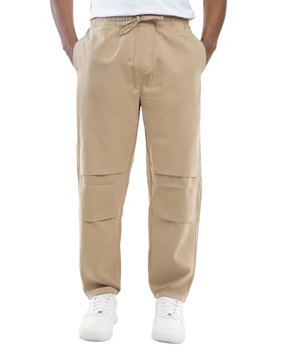 FIRE WOOD - بنطال رياضي بتصميم متعدد الطبقات خصر مطاطي مع رباط قماش قطني مريح للرجال من Fire Wood