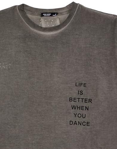 FIRE WOOD - تيشرت كاجوال للرجال مطبوع عليه (LIFE) من فاير وود