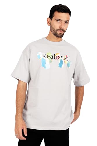 FIRE WOOD - تيشرت كلاسيكي مزين بتصميم مطبوع بكلمة (Realistic) للرجال من فاير وود