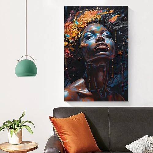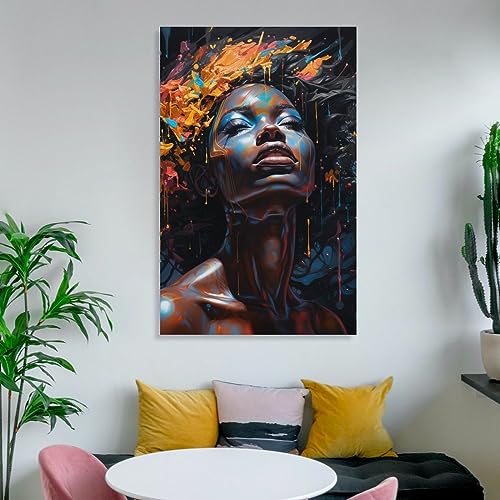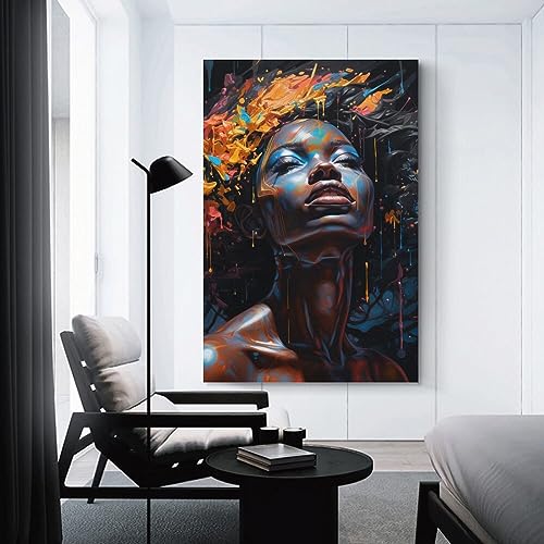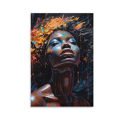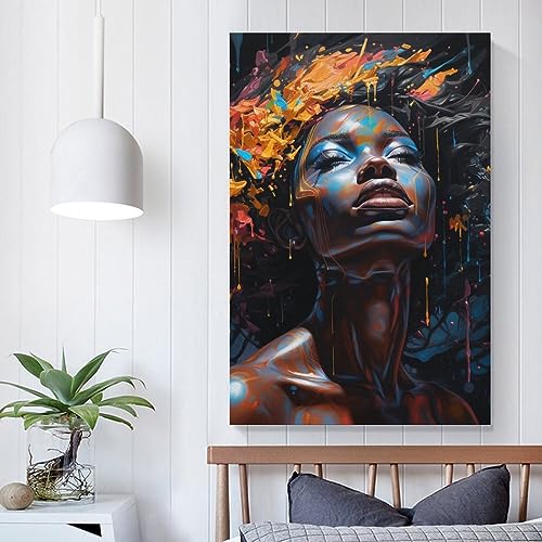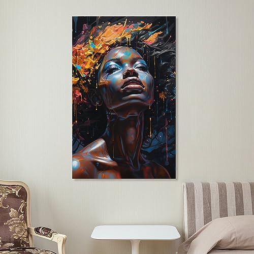 FireDeer - لوحة فنية جدارية من القماش بتصميم امرأة أمريكية من أصل أفريقي لغرفة المعيشة من فاير دير، بدون إطار (مقاس 40 × 60 سم، 01)