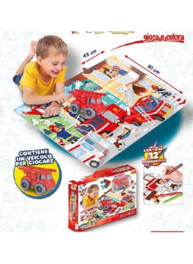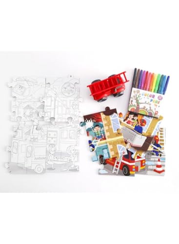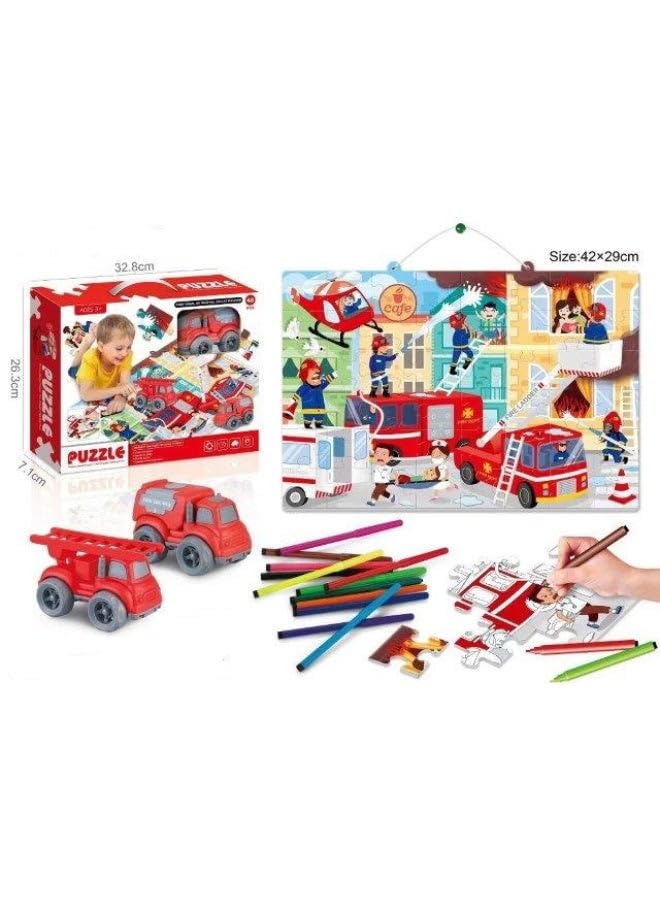 Generic - لعبة بازل إطفاء الحريق مع سيارات وأقلام تلوين، مقاس 42×29 سم، ثيم رجال الإطفاء للأطفال