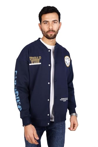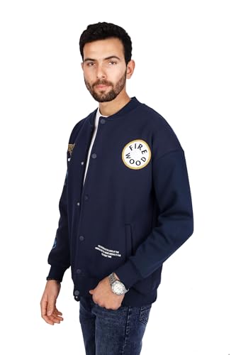 FIRE WOOD - جاكيت رياضي بطبعة كلمة (world) من فاير وود، لون ازرق داكن، مقاس XL، الرجال