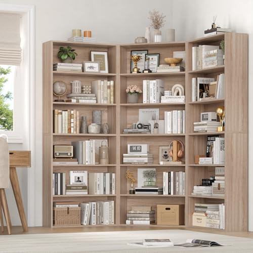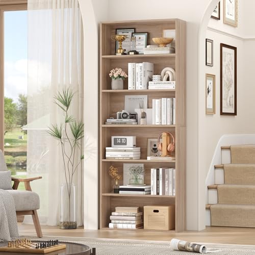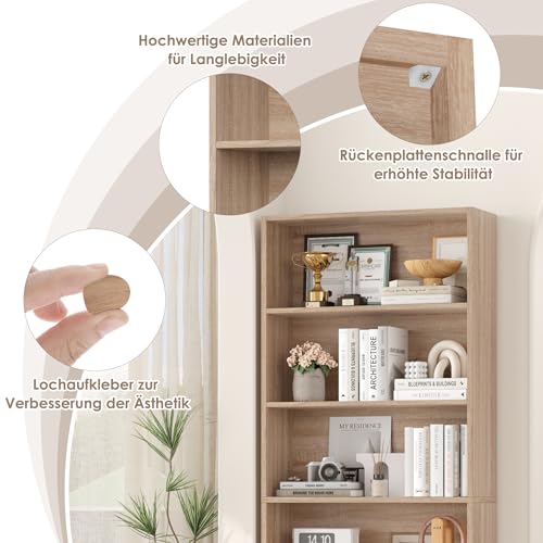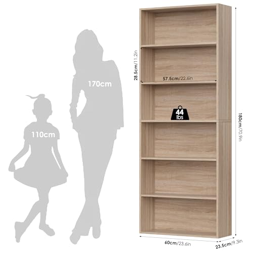 FirFurd - خزانة كتب خشبية مع 6 مساحات تخزين من فيرفورد رف خشبي لغرفة المعيشة والدراسة 1.80 متر × 60 سم 23.5 فاتح