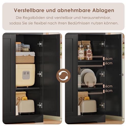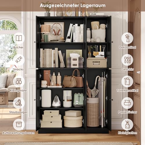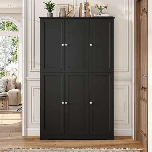 FirFurd - دولاب مطبخ فيرفورد، دولاب متعدد الأغراض، دولاب تخزين بوفيه بـ 6 أبواب وأرفف قابلة للتعديل، دولاب شامل للمطبخ وغرفة المعيشة ومنطقة المدخل، 1.80 م × 1.06 م × 37 سم