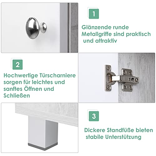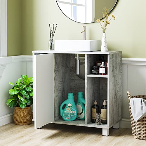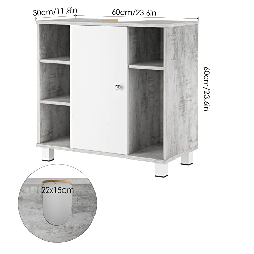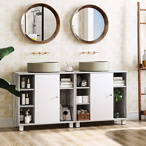 FirFurd - وحدة فانيتي مع خزانة حمام بباب و5 أرفف مفتوحة من فيرفورد، مقاس 60 × 30 × 60 سم، رمادي/أبيض