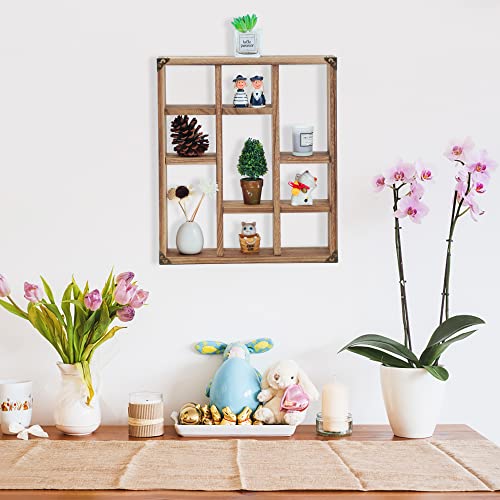 FIRMINANA - رف عائم من الخشب الريفي بـ 9 فتحات صندوق ظل ريفي عرض الصلب خفيف الوزن للأكواب فيرمينانا مقاس 45× 40 سم لون بني