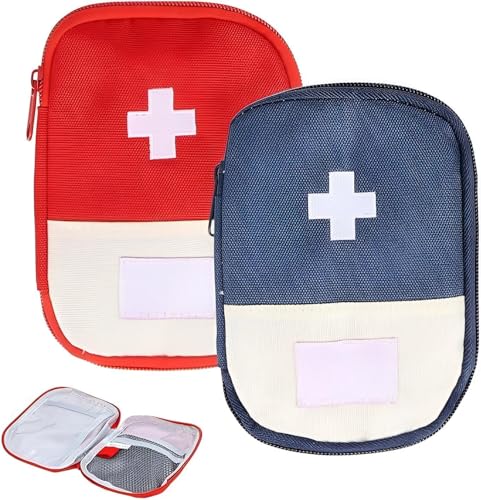 Generic - رف تخزين ادوات الاسعافات الاولية - مجموعة اسعافات اولية صغيرة وخفيفة الوزن للتخزين للرحلات والتخييم والسيارات والمنزل والبحر والنجاة في الهواء الطلق (رف فقط) (قطعتان احمر وازرق داكن)