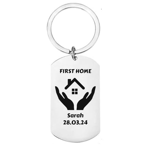First Glass Designs - حلقة مفاتيح من الستانلس ستيل بتصميم شخصي من فيرست جلاس ديزاينز، محفورة بالليزر على الوجهين، رسالة مخصصة
