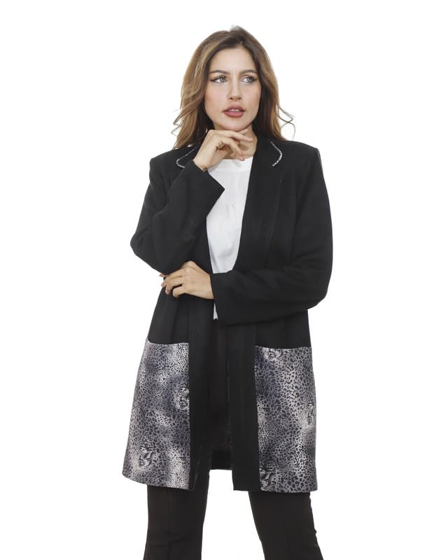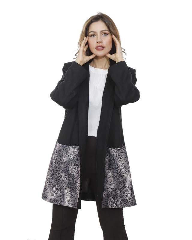 first mode - جاكيت شمواه للنساء من فيرست مود، مقاس 50 - اسود