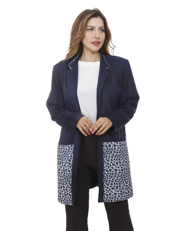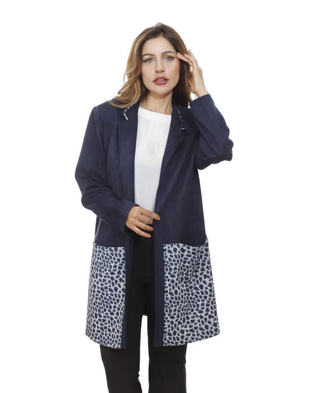 first mode - جاكيت شمواه للنساء من فيرست مود، مقاس 50 - كحلي