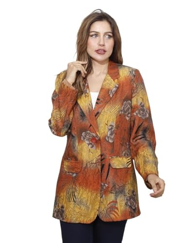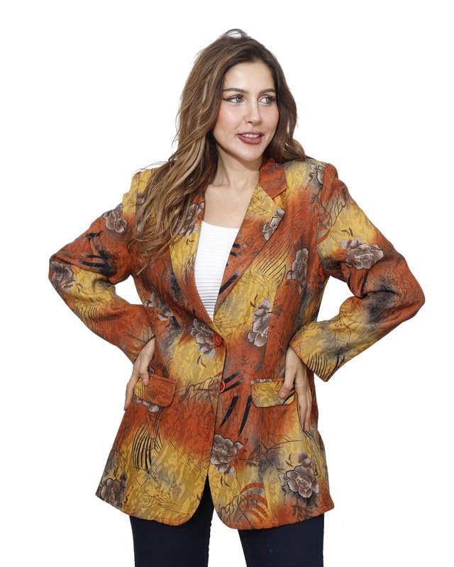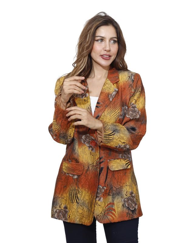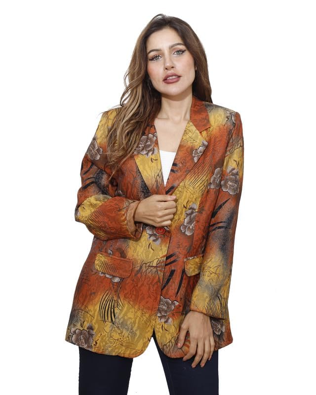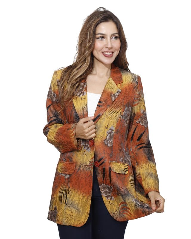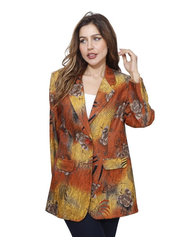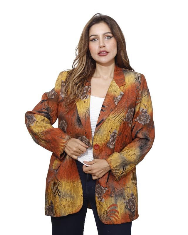first mode - جاكيت مزين بالزهور من الساتان للنساء فيرست مود مقاس 48 - مسطردة خردل