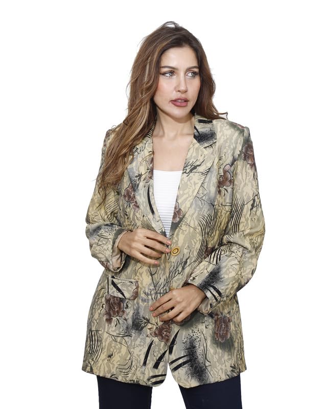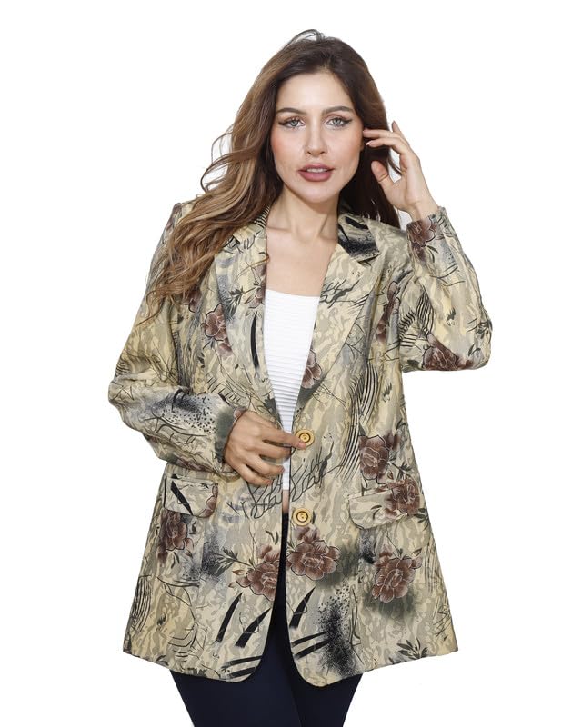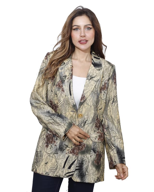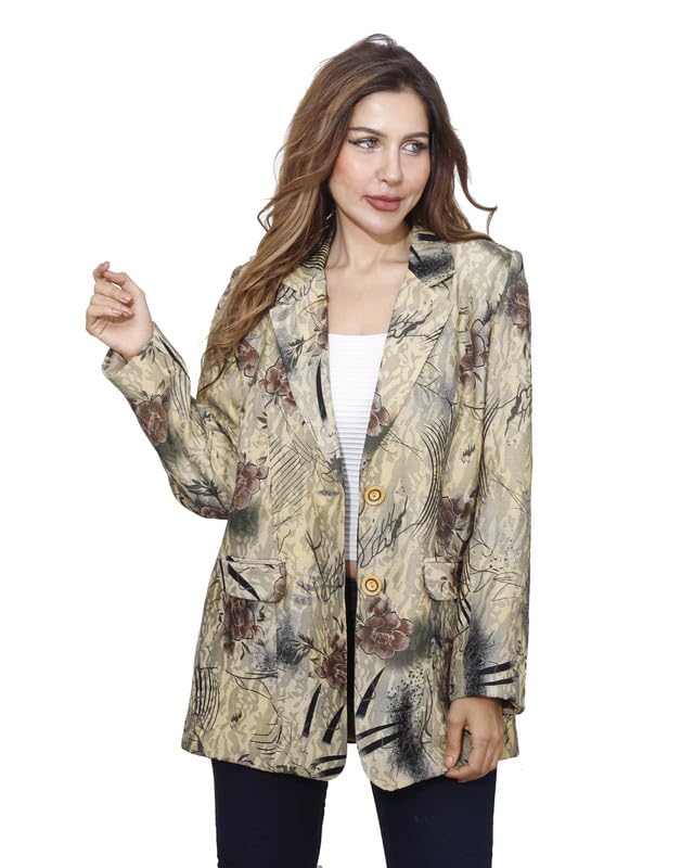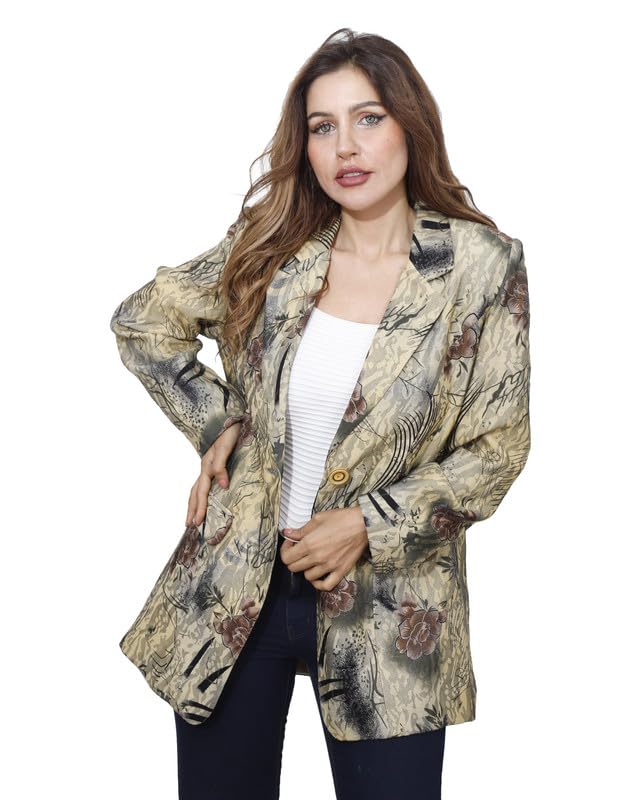first mode - جاكيت مزين بالزهور من الساتان للنساء فيرست مود مقاس 50 - اصفر