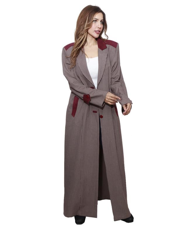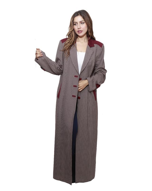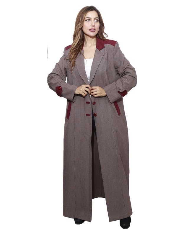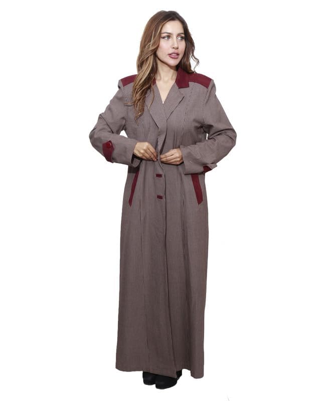first mode - معطف كارو شمواه على الصدر للنساء من فيرست مود، مقاس 48 - لون كافيه