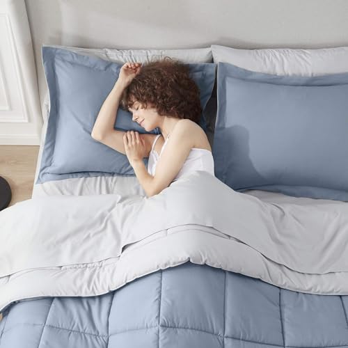 Generic - لحاف قابل للعكس من فيرست مكون من لحاف بلونين مع 2 كيس مخدة مقاس 50 *70 (سماوي& رمادي, 225*235)، مايكرو فايبر
