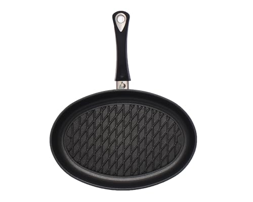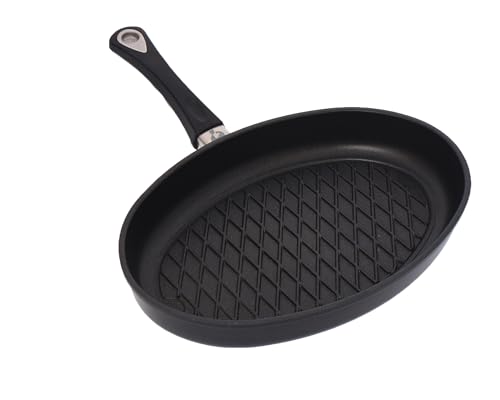 First Titanium - طاسة طهي أسماك من التيتانيوم مع قاعدة شواء وحافة عالية فيرست - مقاس 35 سم × 24 أسود الألومنيوم