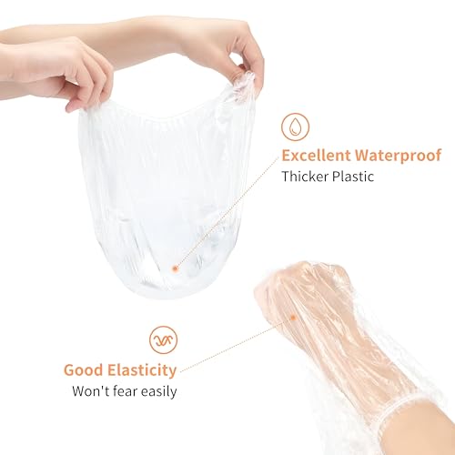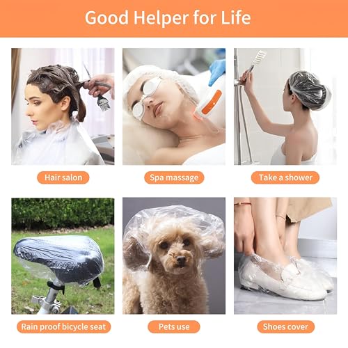 - [مقاومة للماء] أغطية بلاستيكية لمعالجة الشعر مصنوعة من البلاستيك الشفاف عالي الجودة، سميكة ومتينة. ارتداء طواقي الشعر التي تستخدم لمرة واحدة يمكن أن يحمي شعرك من البلل أثناء الاستحمام ويساعدك على الاستمتاع بوقت الاستحمام.