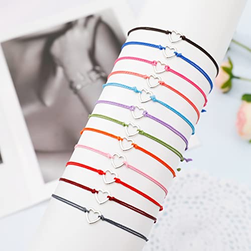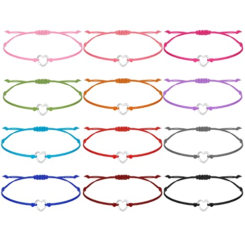 Firtink - 12 قطعة من اساور حبل القلب من فيرتينك سوار صداقة منسوج قابل للتعديل سوار مضفر مصنوع يدويا اساور سلسلة هدية لأفضل الأصدقاء والحبيب والزوجين والنساء والفتيات المراهقات متعدد الالوان مقاس واحد البنات