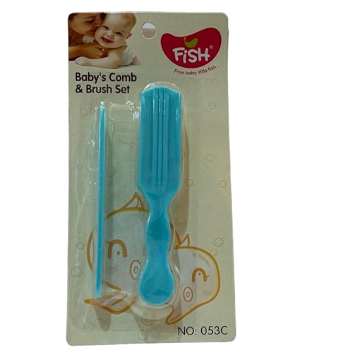 - طقم فرشاة ومشط للأطفال من فيش - لون أزرق فاتح