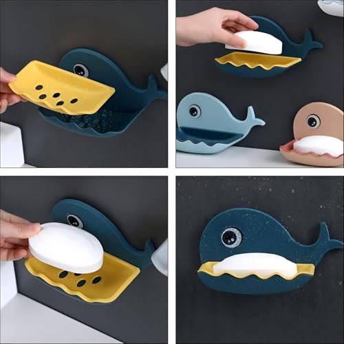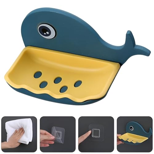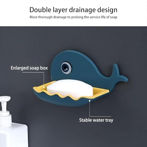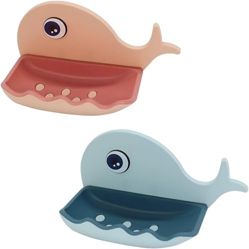 Generic - حامل صابون على شكل سمكة ذاتي التصريف، طبق بلاستيكي بظهر لاصق لتركيب سهل على الحائط، منظم حمام معلق مقاوم للمياه للصابون والجل والحفاظ عليها جافة ومرتبة، مجموعة من 2 قطعة