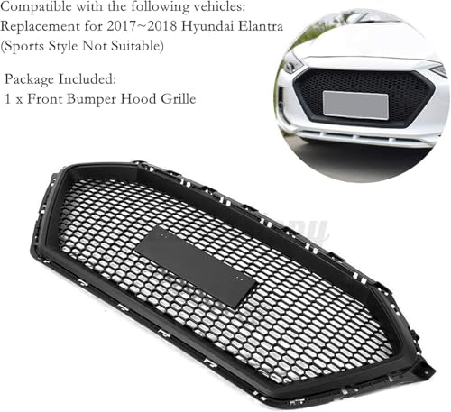 Generic - شبكة سيارة أمامية بتصميم مقياس السمك متوافقة مع سيارة إلنترا (2016-2023) | غطاء شبكة المصد الأمامي | لون أسود لامع | إكسسوارات خارجية | تركيب مباشر بدون تعديل