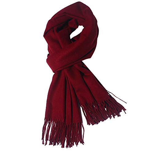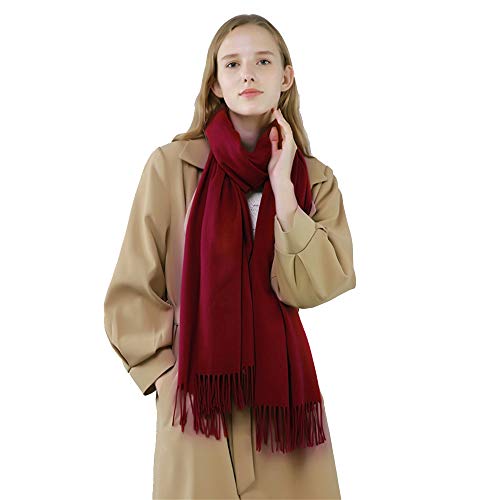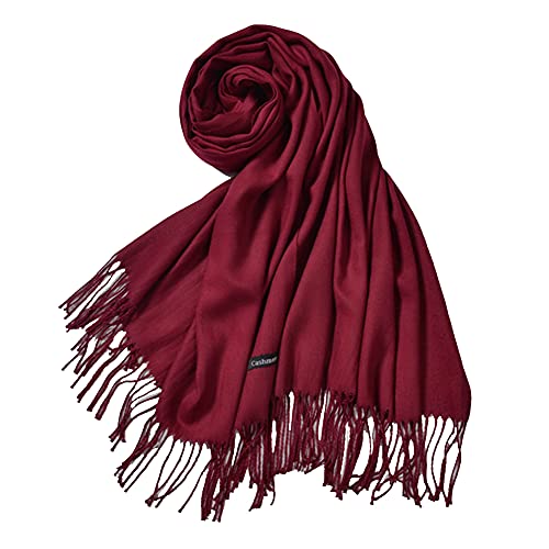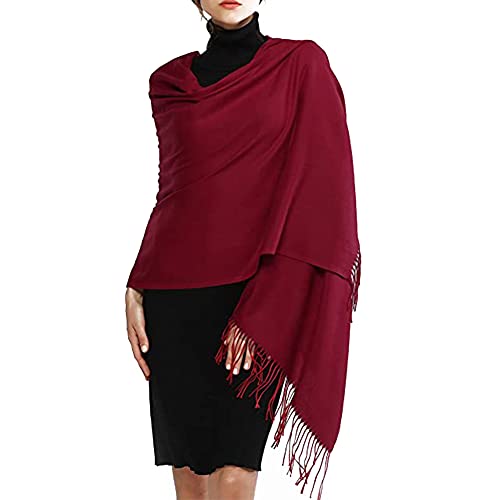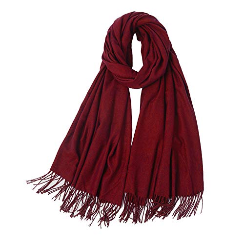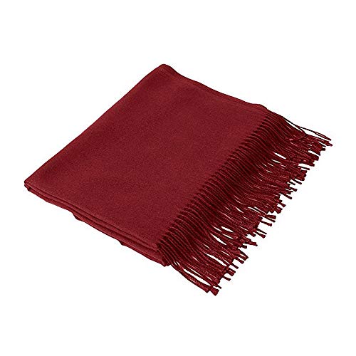 Fish Man - شال باشمينا شتوي مقاس كبير بشراشيب للنساء, بورغندي