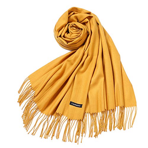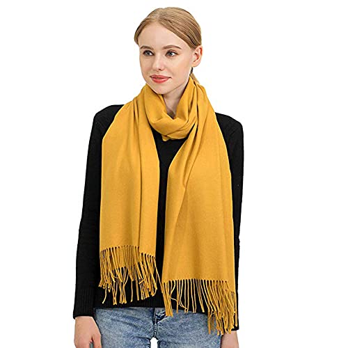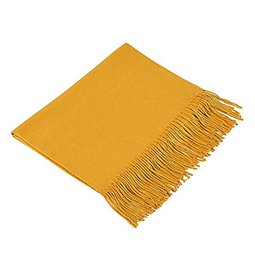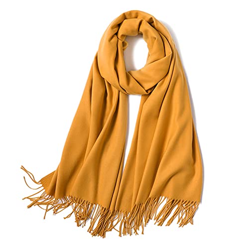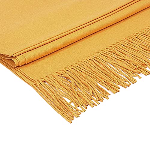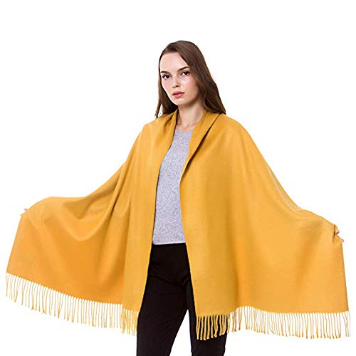 Fish Man - شال باشمينا شتوي مقاس كبير بشراشيب للنساء, أصفر