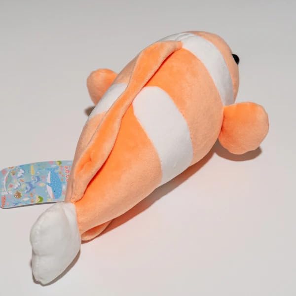- تصميم جذاب: دمية محشوة على شكل سمكة المهرج باللون البرتقالي والأبيض مع تفاصيل لطيفة وابتسامة ودودة