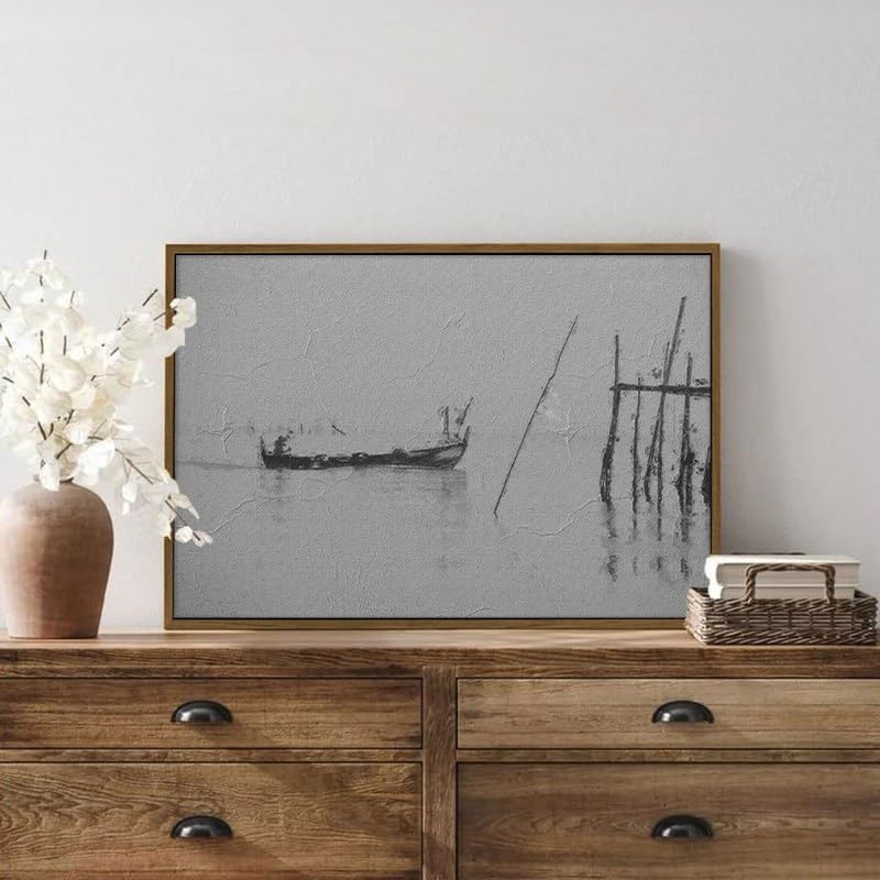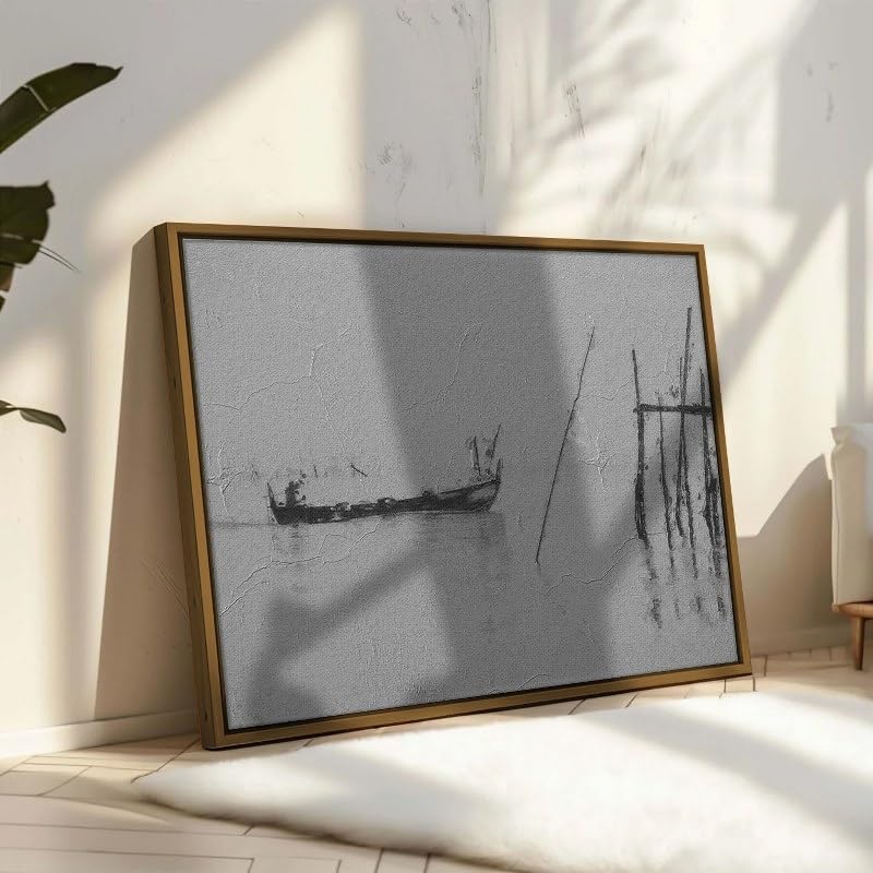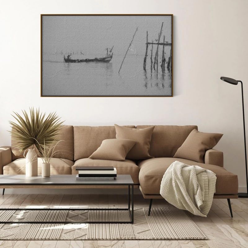 Home Gallery - لوحة فنية قماشية للتعليق على الحائط بطباعة قارب صيد الأسماك على نهر كرابي، 1.2 متر × 80 سم
