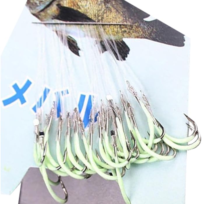 Generic - خطافات صيد أسماك مضيئة مقاس 18 جاهزة مع خيط، مجموعة من 30 قطعة