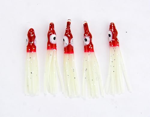 Generic - طعم صيد أسماك بتصميم احترافي على شكل حبار متفاعل بالأشعة فوق البنفسجية، عبوة من 5 قطع، مقاس 4 سم، لون أحمر