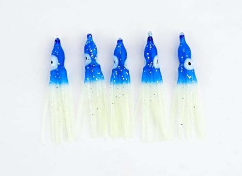 Generic - طعم صيد أسماك بتصميم احترافي على شكل حبار متفاعل بالأشعة فوق البنفسجية، عبوة من 5 قطع، مقاس 5 سم، لون أزرق