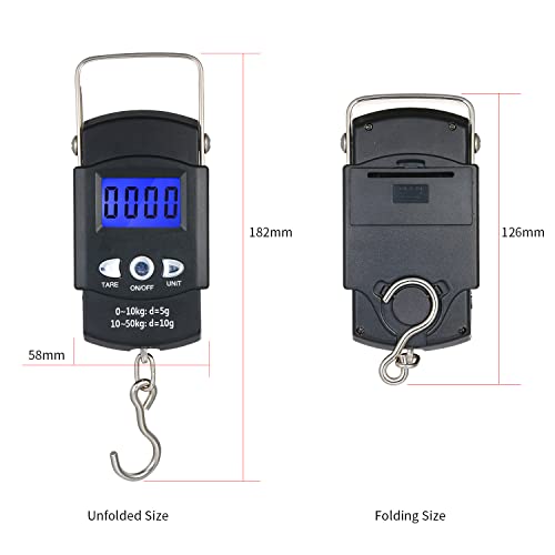 Generic - ميزان صيد سمك الكتروني ديجيتال محمول بخطاف توازن يحمل بحد اقصى 110 رطل/50 كجم مع شاشة LCD باضاءة خلفية مع شريط مسطرة قياس.