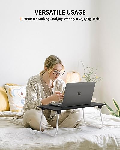 FISYOD - طاولة لاب توب قابلة للطي، صينية طاولة محمولة للسرير، حامل لاب توب للسرير لاستخدامه أثناء العمل والكتابة والرسم وتناول الطعام من فيسيود، (أسود)
