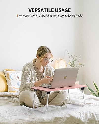 FISYOD - طاولة لاب توب قابلة للطي من فيسيود، صينية طاولة سرير محمولة، حامل لاب توب للعمل والكتابة والرسم وتناول الطعام (وردي)