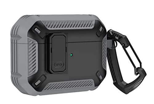 Generic - حافظة سماعات ايربودز برو مع قفل آمن مطور، حافظة واقية من سلسلة ارمور مع سلسلة مفاتيح، حافظة شديدة التحمل ومضادة للصدمات لكامل الجسم متوافقة مع ايربودز برو 2019، لون رمادي