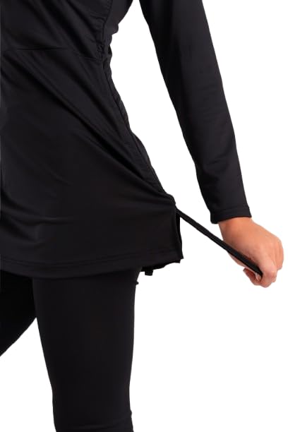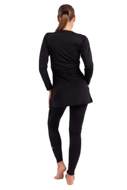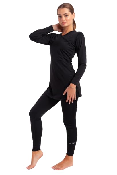 Fit Freak - طقم ملابس سباحة للنساء من فيت فريك ميدنايت موشن مكون من 4 قطع بلون اسود مع بلوزة وسروال وغطاء للورك وقبعة - مقاس S