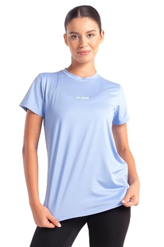 Fit Freak - بلوزة عصرية نصف كم للجري للنساء من فيت فريك، لون ازرق سماوي