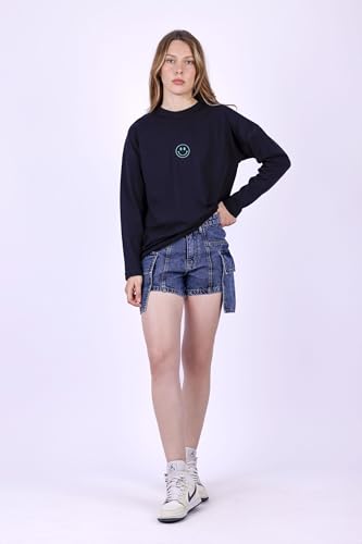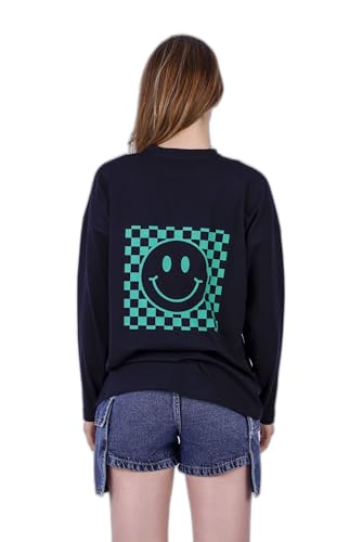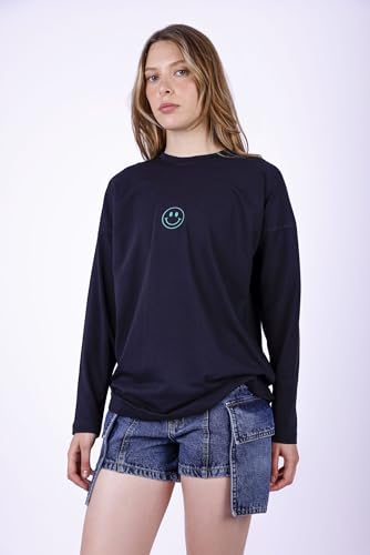 Fit Freak - تي شيرت فيت فريك للنساء بتصميم مبتسم باللون الاسود العصري (عبوة من قطعة واحدة)