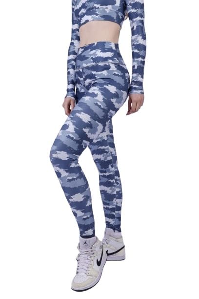 Fit Freak - سروال ضيق للنساء من فيت فريك بلون رمادي دخاني مموه مطبوع (عبوة من قطعة واحدة)