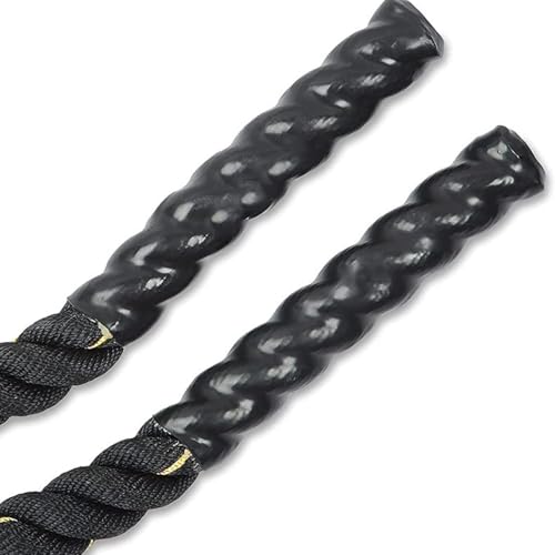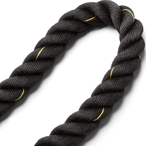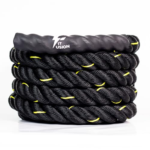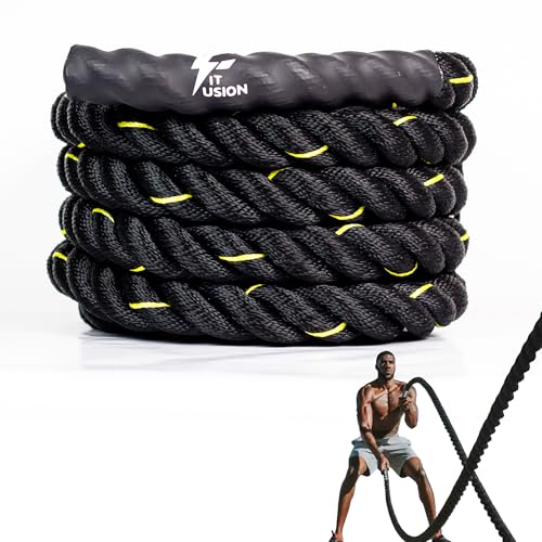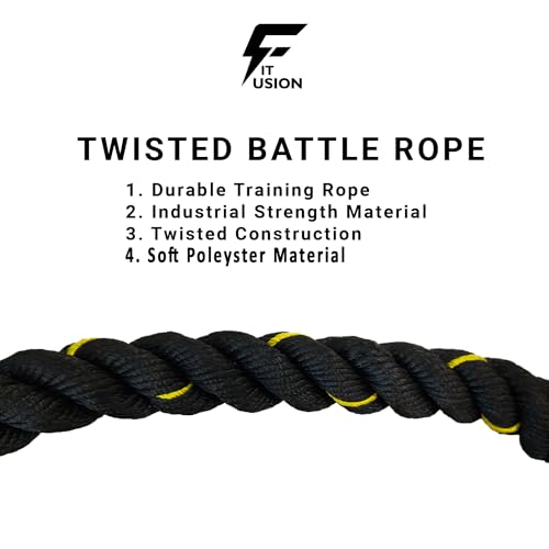 Fit Fusion - حبل معركة ثقيل مصنوع من البوليستر المرن بقطر 3.8 سم وطول 18.2 م للاستخدام في الجيم والتمارين المنزلية من فيت فيوجن®، أسود وأصفر