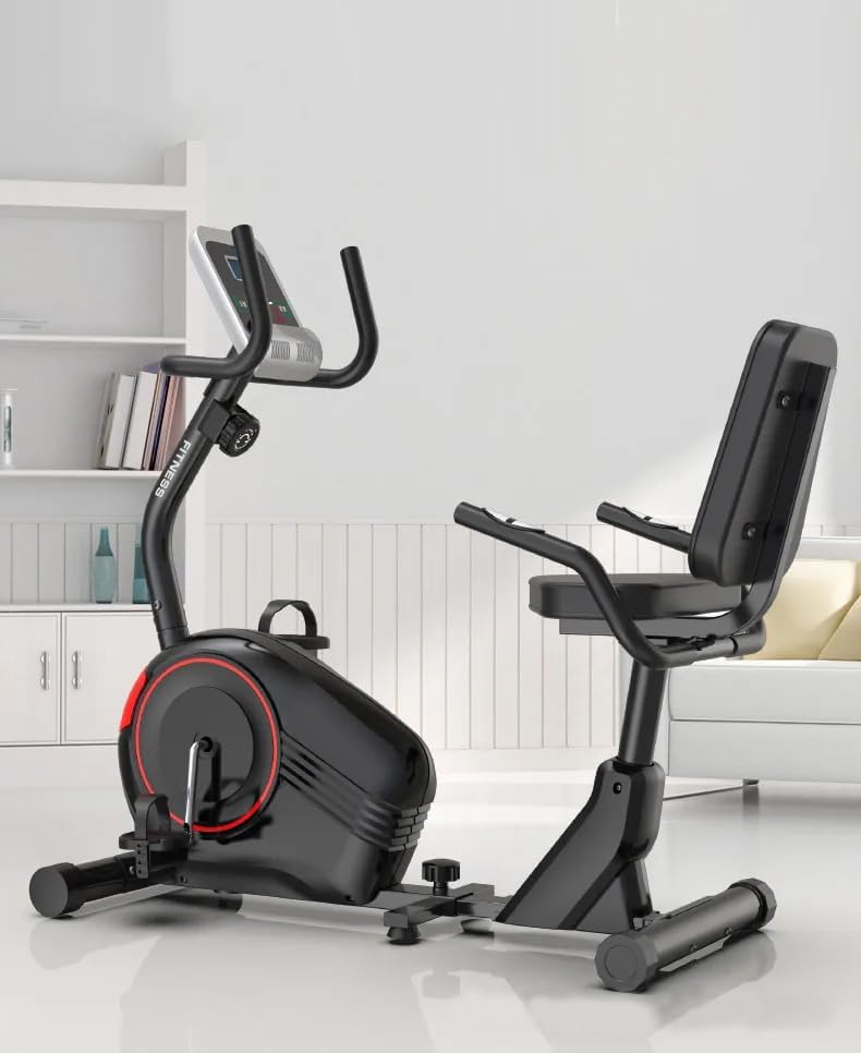 Fitness - دراجة تمارين استرخاء من فتنس، تحكم أفقي مغناطيسي، 8 مستويات مقاومة 100 كجم